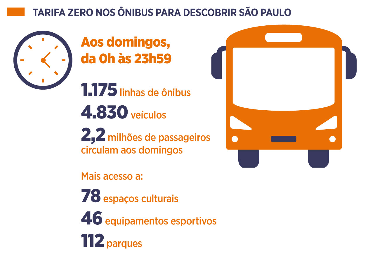 Aproveite São Paulo de ônibus aos domingos. É de graça