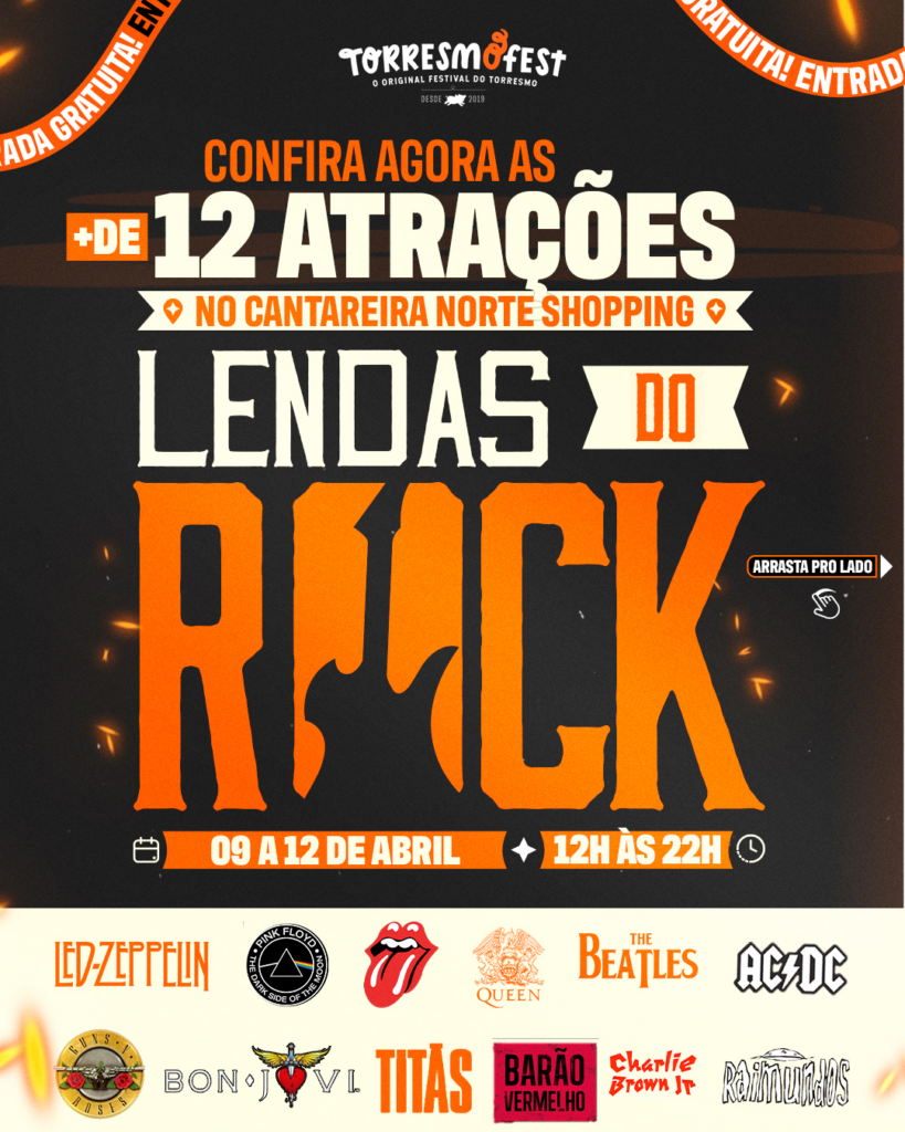 O TorresmoFest desembarca no Cantareira Norte Shopping para uma edição especial “Lendas do Rock”. Entre os dias 09 e 12 de abril, o centro de compras vira palco de uma celebração que une o melhor da culinária suína ao espírito rebelde dos clássicos mundiais.
